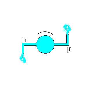aparato sobre un eje en sentido opuesto a la salida del agua. Para explicar